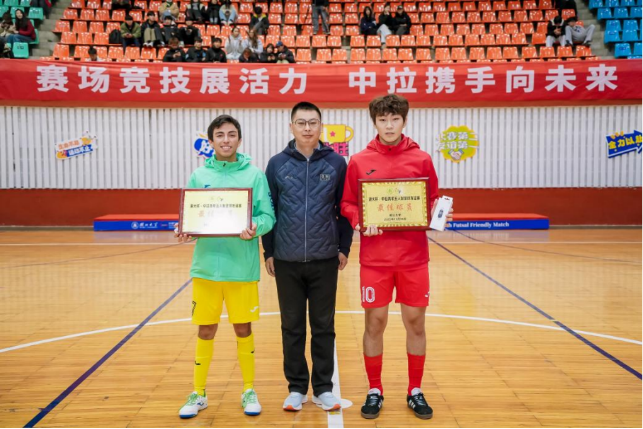 本次比赛不仅为中拉青年提供了展现自我的舞台,更充分彰显了中拉青年友好交流、奋勇争先的精神风貌。赛事最佳球员张嘉俊表示,本次比赛是湖北大学五人制足球队首次与拉美球队交锋,既是一场新的挑战,也是展现湖北大学风貌、深化湖北大学与拉美足球交流的难得契机。最佳球员吉安迪表示,本次比赛为两支球队提供了增进友谊、了解彼此文化的机会,期待将来继续参与此类活动。