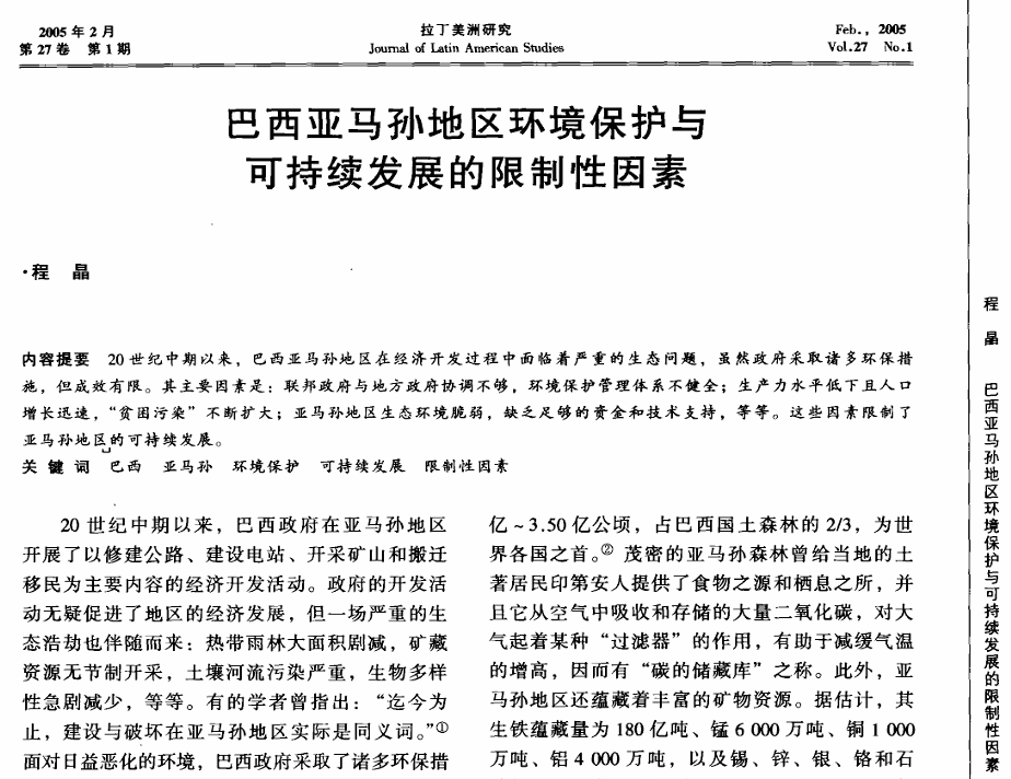 巴西亚马孙地区环境保护与可持续发展的限制性因素