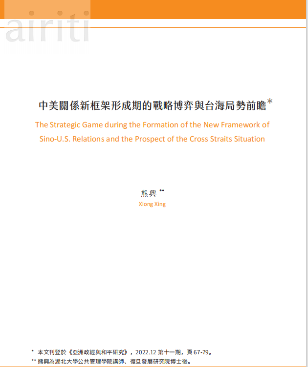 中美关系新框架形成期的战略博弈与台海局势前瞻