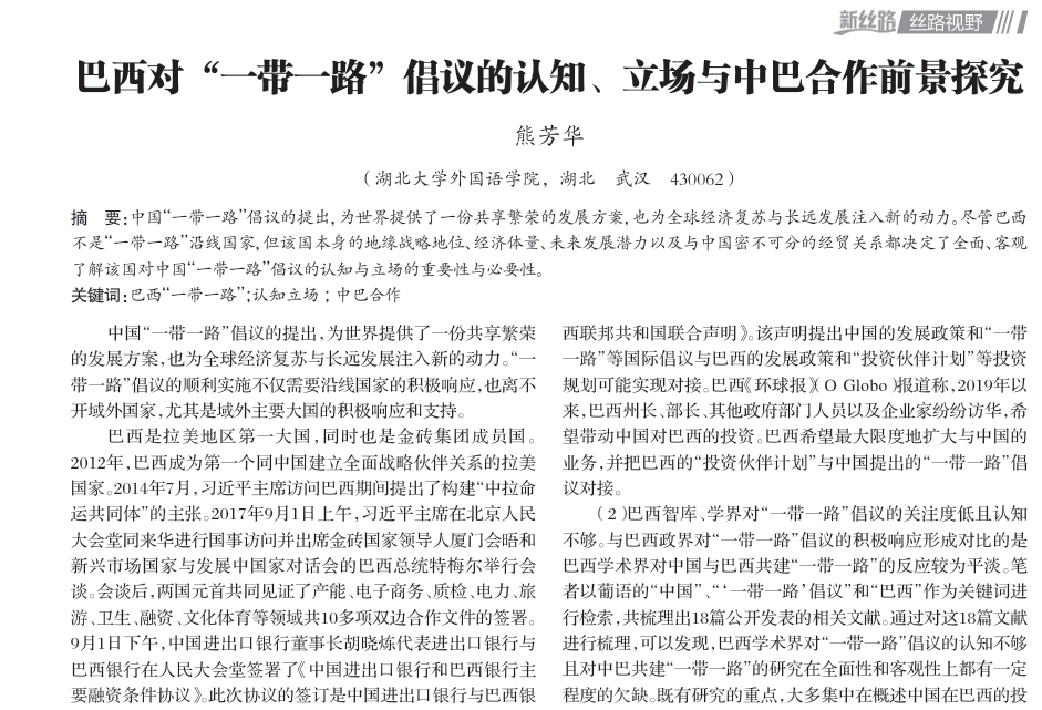 巴西对"一带一路"倡议的认知、立场与中巴合作前景探究