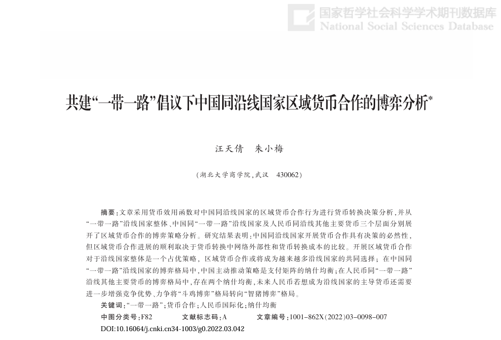 共建“一带一路”倡议下中国同沿线国家区域货币合作的博弈分析