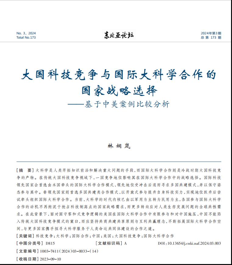 大国科技竞争与国际大科学合作的国家战略选择 ——基于中美案例比较分析