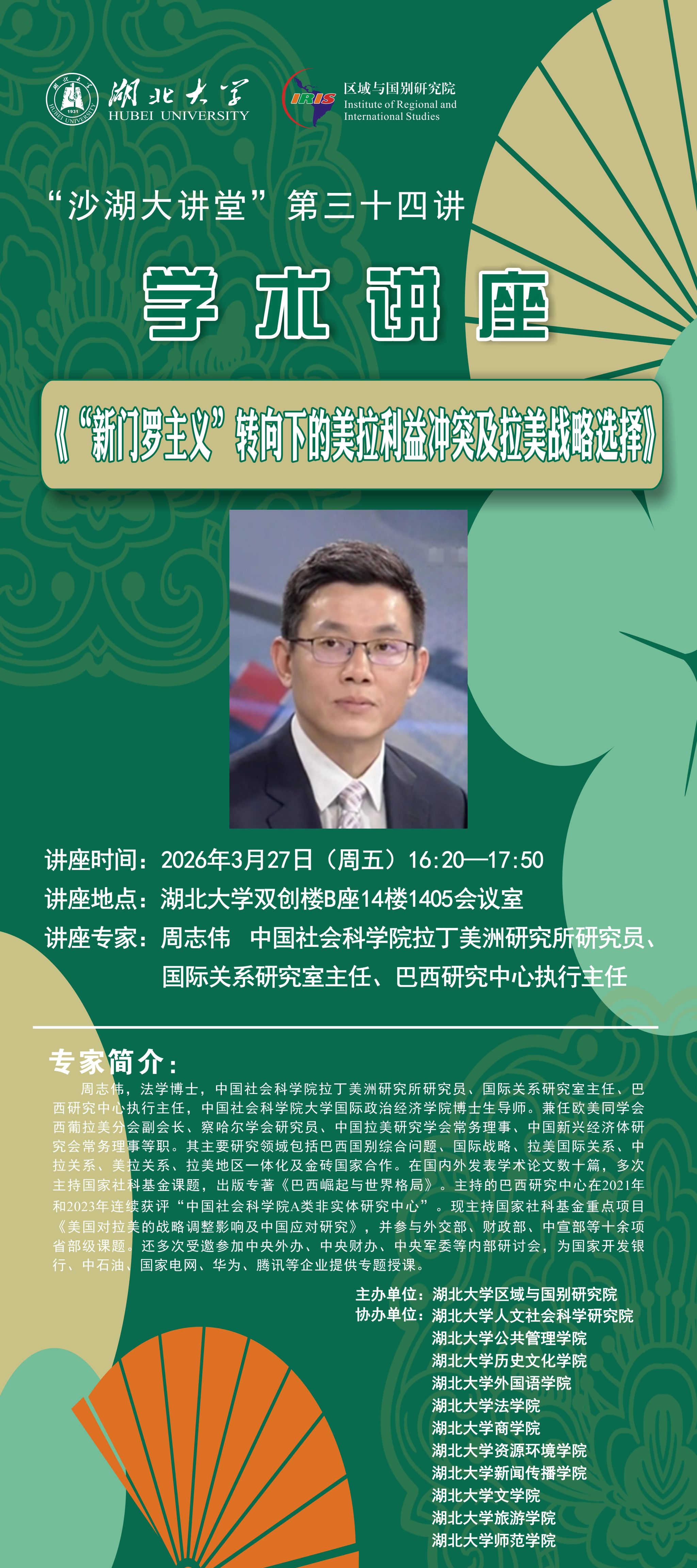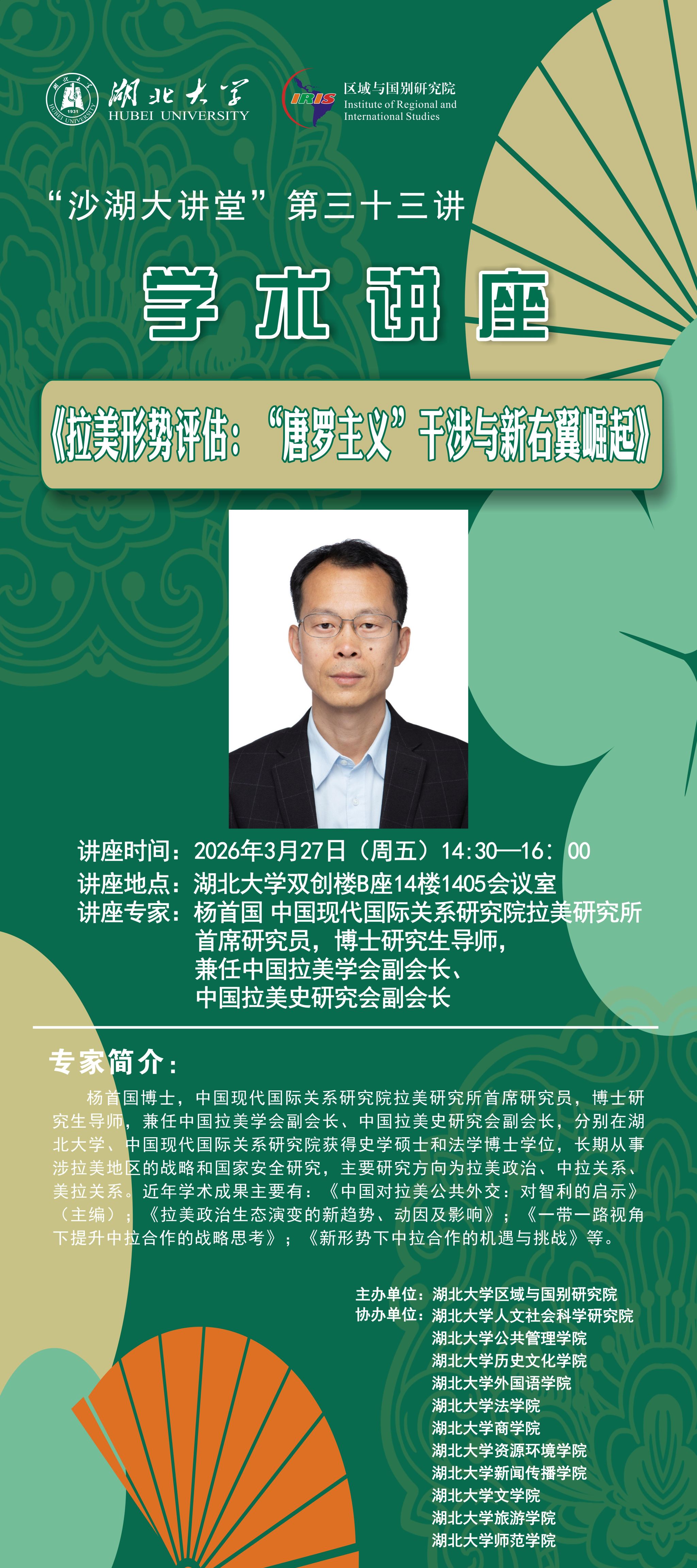 【讲座预告】《沙湖大讲堂》第三十二至三十五讲