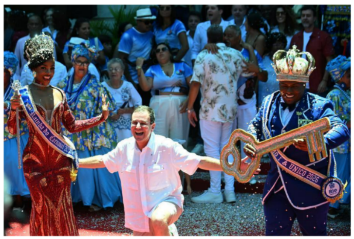 2月13日,巴西里约热内卢金钥匙交接拉开狂欢节帷幕。据新华网消息,巴西里约热内卢市长爱德华多·帕埃斯13日在里约市长宫将象征城市管理权的金钥匙交给“狂欢节国王”,标志着里约狂欢节正式开幕。金钥匙交接是每年里约狂欢节启动的传统仪式,象征在节日期间整座城市都由“狂欢节国王”接管,其任务是与“王后”和两名“公主”一起在各项狂欢活动中带领市民和游客载歌载舞、共同狂欢。里约市政府预计,2026年狂欢节将有约800万人参与,为该市带来约59亿雷亚尔(约11.3亿美元)的收入。根据里约市旅游局公布的狂欢节官方日程,13和14日共有15支甲级组桑巴舞校队伍在桑巴大道举行花车巡游表演,特级组桑巴舞校表演将于15、16和17日举行,共有12支队伍参加。21日,获得前6名的特级组桑巴舞校队伍将返场进行一场冠军巡游表演,宣告本年度狂欢节落幕。里约狂欢节是巴西全国规模最大、国际知名度最高的狂欢节。节日期间,除了桑巴大道上的表演,里约全城还将举行400多场街头狂欢游行活动。此外,圣保罗、萨尔瓦多、累西腓等巴西城市也同时举行盛大的狂欢节庆祝活动。