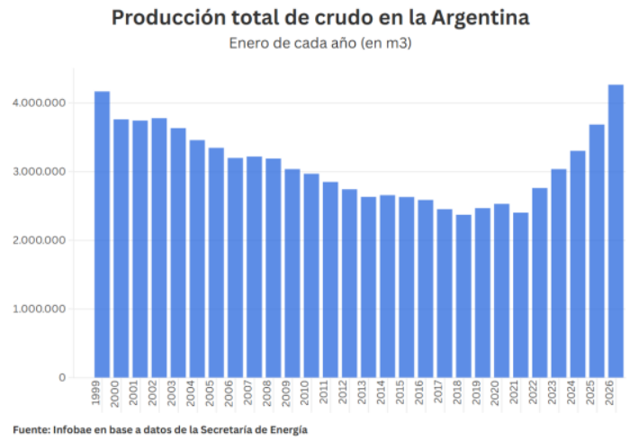 图片来源:https://www.infobae.com/economia/2026/03/04/argentina-alcanzo-un-record-historico-de-produccion-de-petroleo-mientras-sube-el-precio-global-por-el-conflicto-en-iran/。
