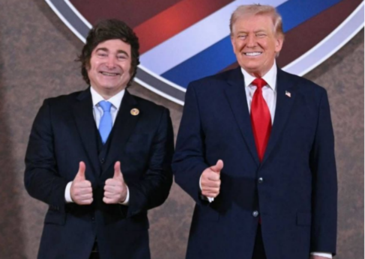 图片来源:https://www.batimes.com.ar/news/argentina/milei-reaffirms-alliance-with-trump-at-shield-of-the-americas-summit.phtml。