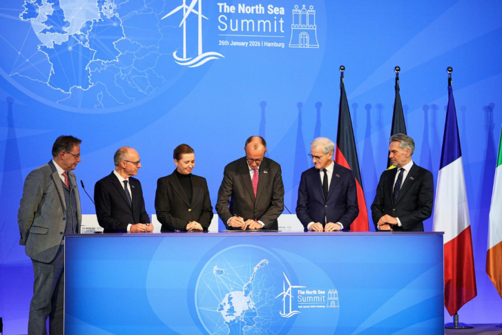 1月26日,第三届北海峰会在汉堡举行。据法新社报道,当地时间26日,第三届北海地区能源安全合作峰会在德国汉堡举行,比利时、丹麦、法国、德国、冰岛、爱尔兰、卢森堡、荷兰及挪威等国的能源部长们共同签署了一份联合声明,同意在北海建设一个庞大的海上风电网络,旨在打造“全球最大的清洁能源枢纽”。据悉,总装机容量将达100吉瓦,该产能相当于满足近1亿户家庭的用电需求。报道称,美国总统特朗普在格陵兰岛问题上发出的威胁促进了欧洲的能源独立步伐,以保障欧洲大陆的能源供应安全,并彻底摆脱对俄罗斯天然气的依赖。报道还称,丹麦首相弗雷泽里克森当天感谢欧洲各国同僚的支持,并感谢他们尊重她所说的“红线”,她希望通过在格陵兰岛设立常驻北约特派团,以及与美国进行双边谈判来解决格陵兰岛危机。
